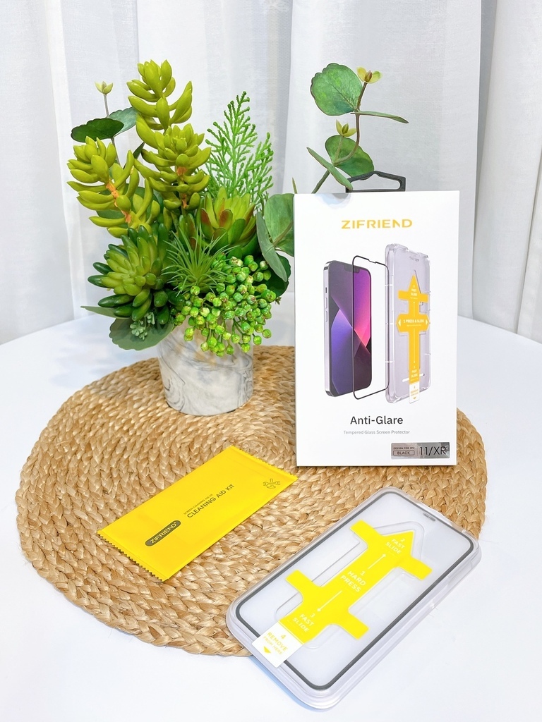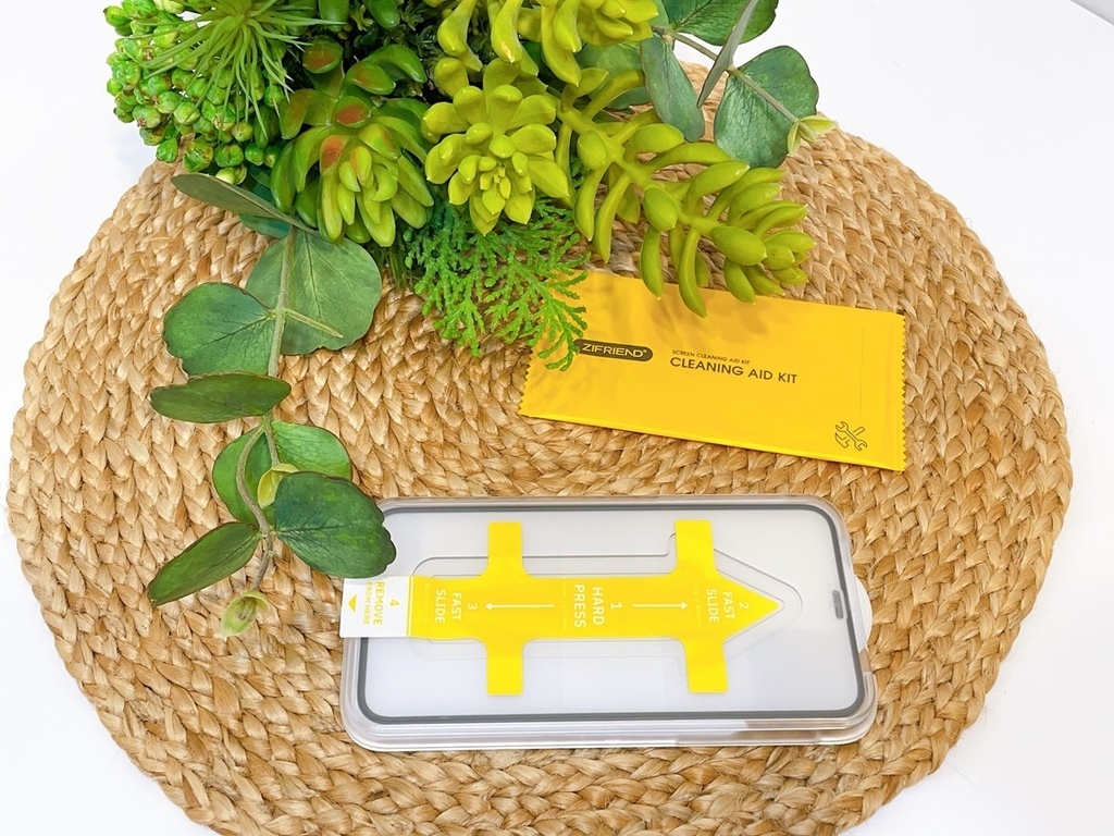 ZIFRIEND零失敗隱視貼真的超好貼,第一次貼膜就能輕鬆上手!內容物很簡單,有附上手機螢幕清潔包還有手機保護貼和一蓋即貼零失敗對位器。